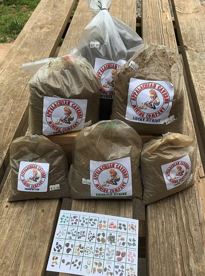 Appalachian Caverns has a Gem Mine! Enjoy prospecting for your very own gemstones at our wet or dry-sift site! Kids and adults alike will enjoy discovering precious and semi-precious gemstones. Our bags are mixed with a sand and mineral mix, so we guarantee a find for everyone! Our friendly staff will help make the experience great! Walk-ins welcome!